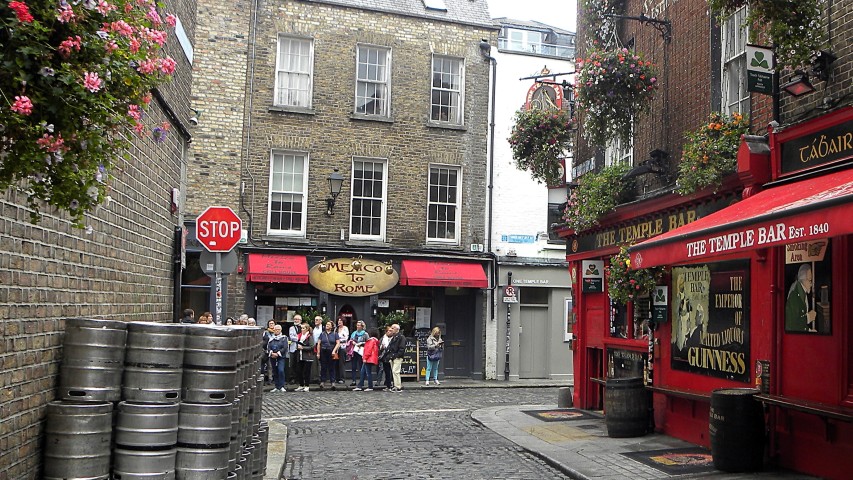 Finalment, ens endinsarem en el famós i animat barri de Temple Bar, on el traçat de carrers empedrats manté viva l’essència de la música tradicional. En aquest bressol de grans artistes com The Dubliners, U2 o Westlife, qui ho desitgi podrà gaudir de l’atmosfera única dels seus pubs i degustar una pinta de la mítica cervesa Guinness.