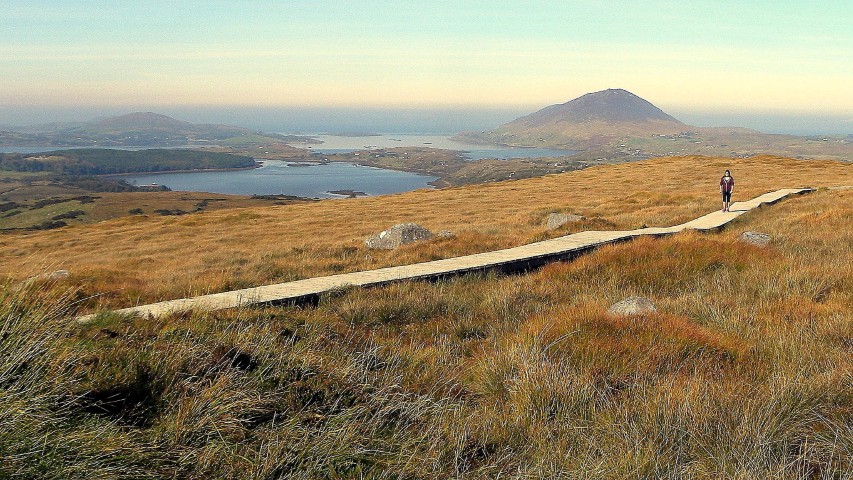 Avui ens endinsarem en la regió de Connemara que es presenta com un territori de torberes i muntanyes de quarsita esculpides durant l’última edat de gel. Penetrarem en el parc nacional per la petita localitat de Letterfrack, on recorrerem el sender de Diamond Hill on el paisatge canvia de tonalitat segons la llum del dia.