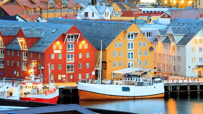 Passejarem pels carrers de Tromsø, on ens sorprendrà el contrast entre la policromia de les façanes de les tradicionals cases de fusta i l’arquitectura més avanguardista dels seus edificis més moderns, com ara la icònica Catedral de l’Àrtic (Ishavskatedralen), amb una singular i cridanera estructura en forma de vela.