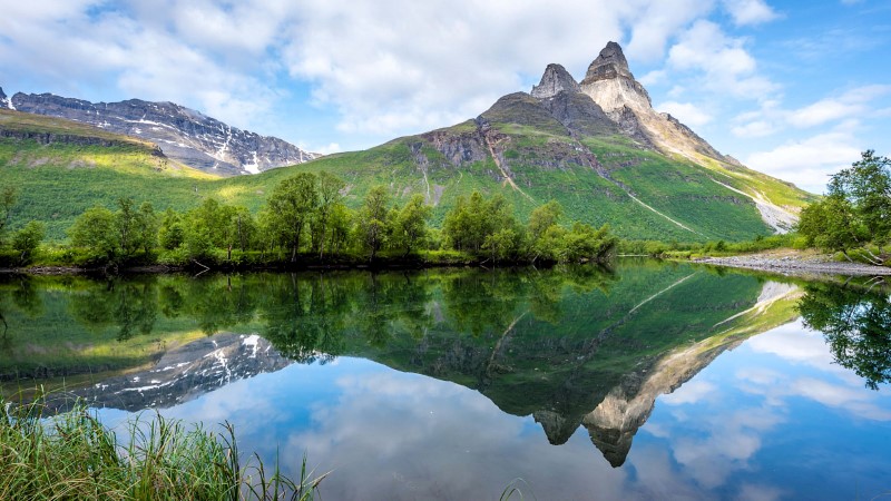 I descubrirem les aigües blaves de l’èstany de Blåisvatnet, color que s’explica per l’alt contingut de partícules de llim de les aigües procedents del desglaç de la llunyana glacera de Lenangsbreen. Un indret idíl·lic rodejat de prominents muntanyes de gairebé 2.000m d’altitud… i potser amb algun ramat de rens en llibertat!