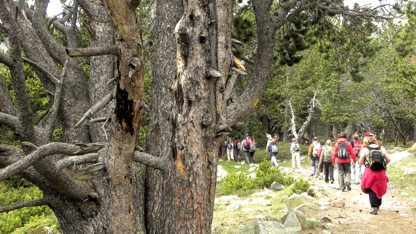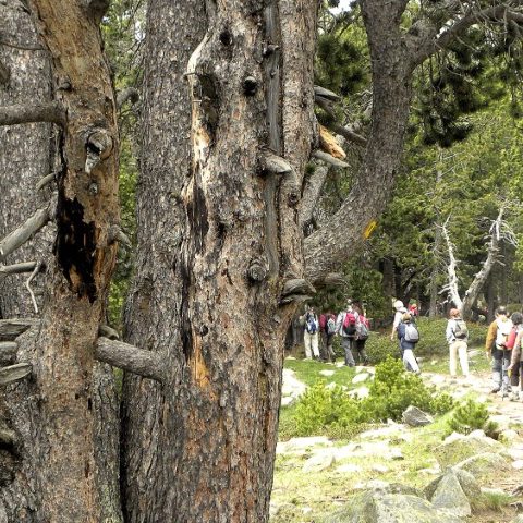 Comprovarem com els resistents pins de muntanya deixen pas als prats de muntanya, probablement esquitxats per vaques i cavalls que hi pasturen tot coincidint amb l’inici de la transhumància estival.